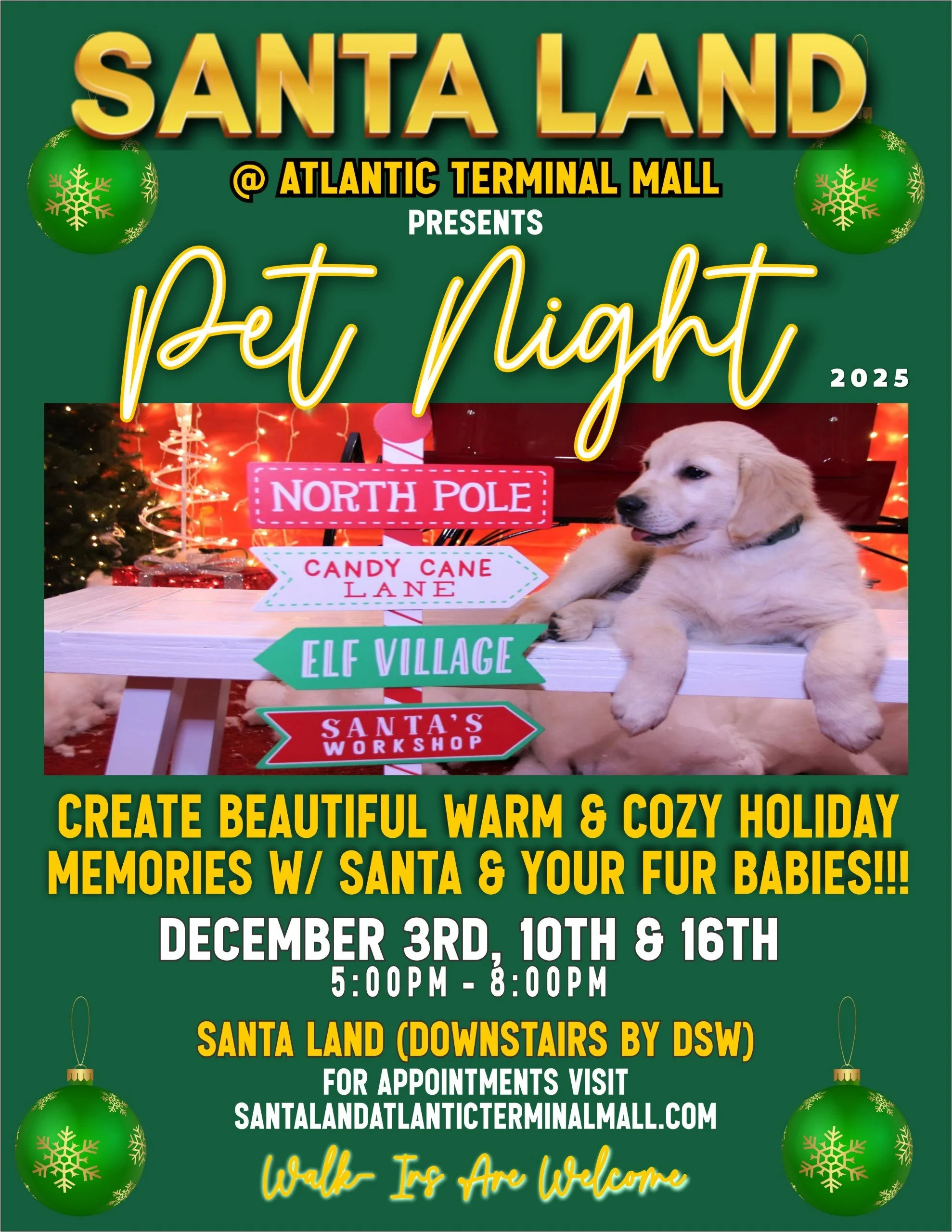 The Coolest Santa EVER… is located @Santa Land in the Atlantic Terminal Mall, downstairs by DSW! Santa Land has been a staple in the community for over 15 years! We take pride in serving the community in both conventional and unconventional ways. Visiting Santa Land @ Atlantic Terminal Mall has become a Holiday Family Tradition for many! Throughout the years we have established an amazing bond with thousands of families and their pets!